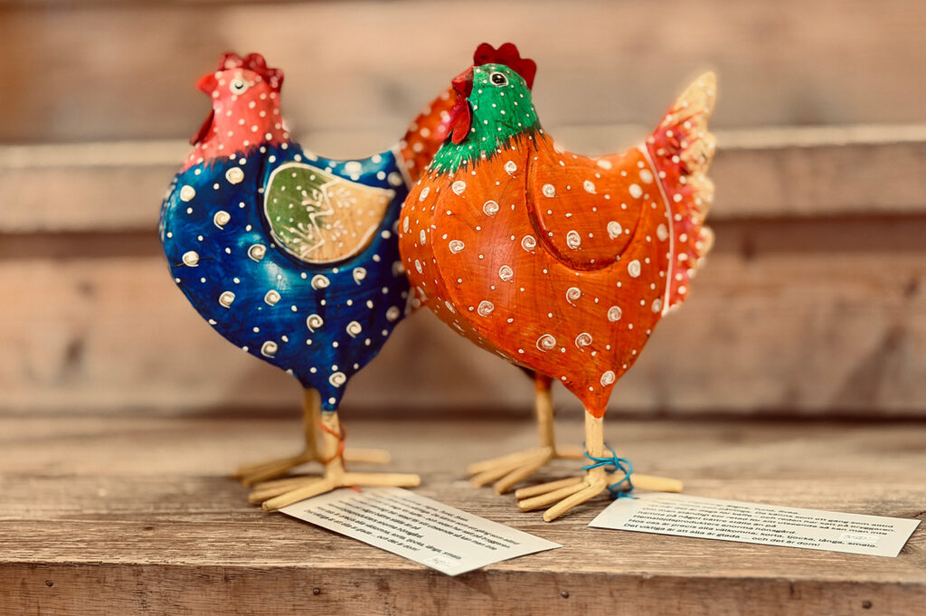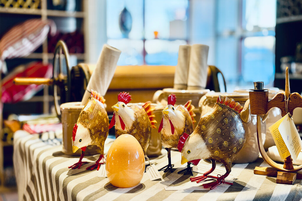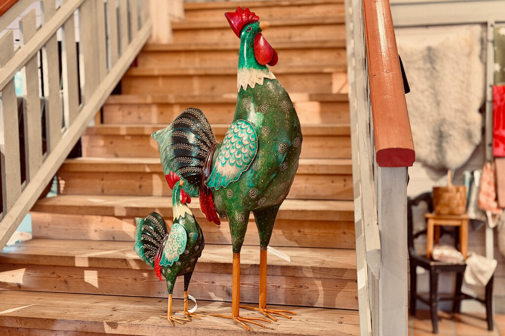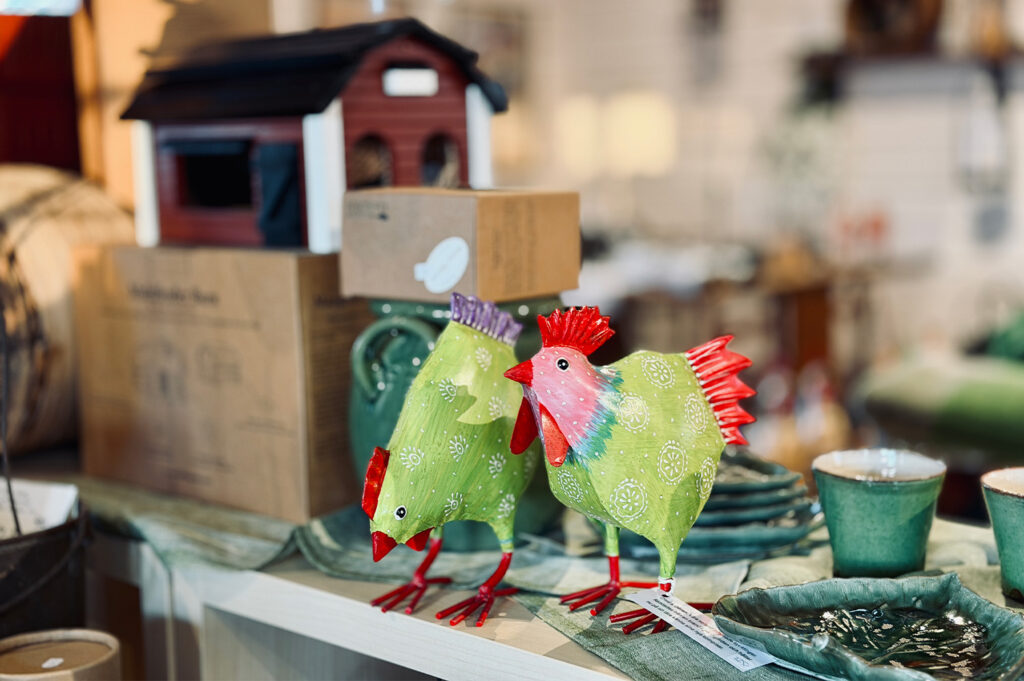 Säsongens ”hönsgård” har anlänt och butiken är nu full av plåthönor & tuppar.